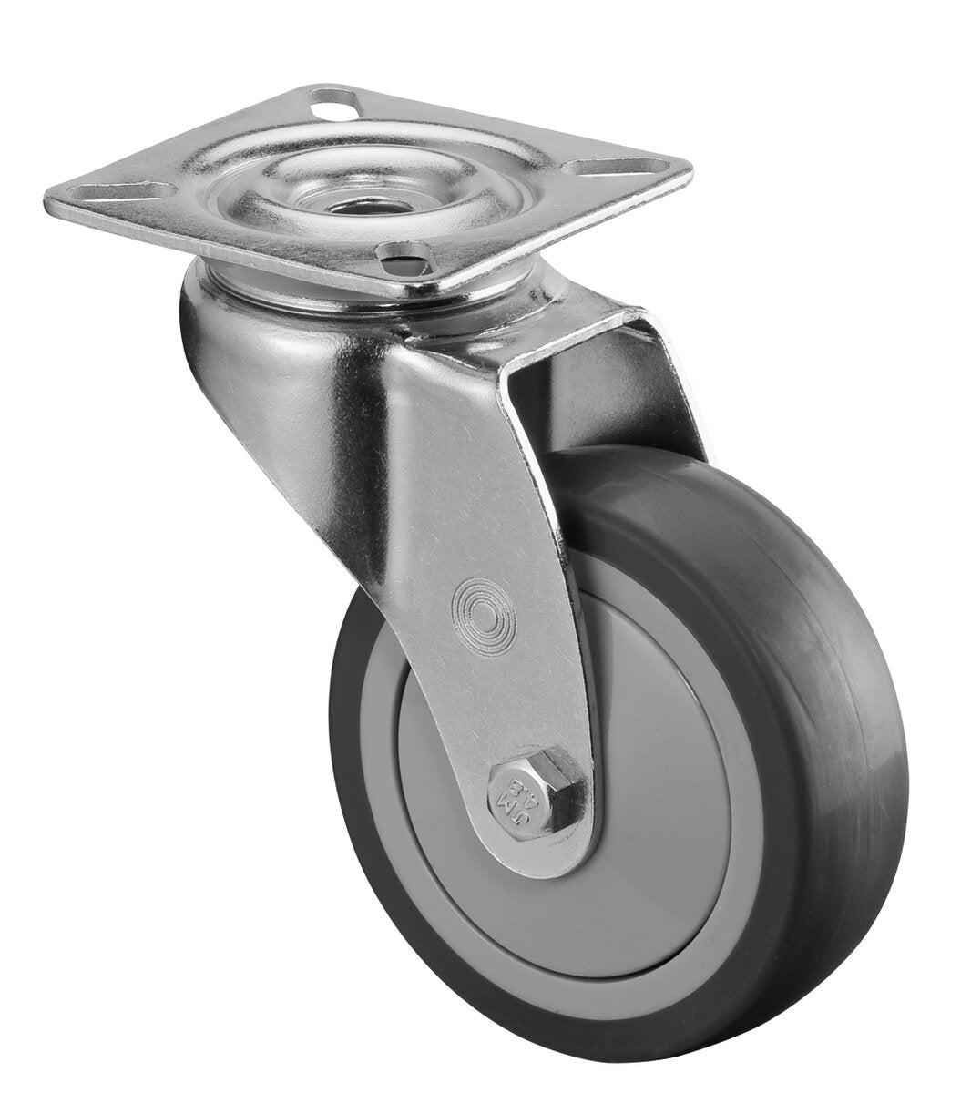 Apparathjul A300.A85.075, Produkttype: Svingbare hjul, Festing: Platefeste, Ø skruehull: 6.3 mm, Hjulets senter: Plast, Slitebane: termoplastisk gummi grå, Lager: Kulelager, Ø hjul: 75 mm, Lastkapasitet: 75 kg