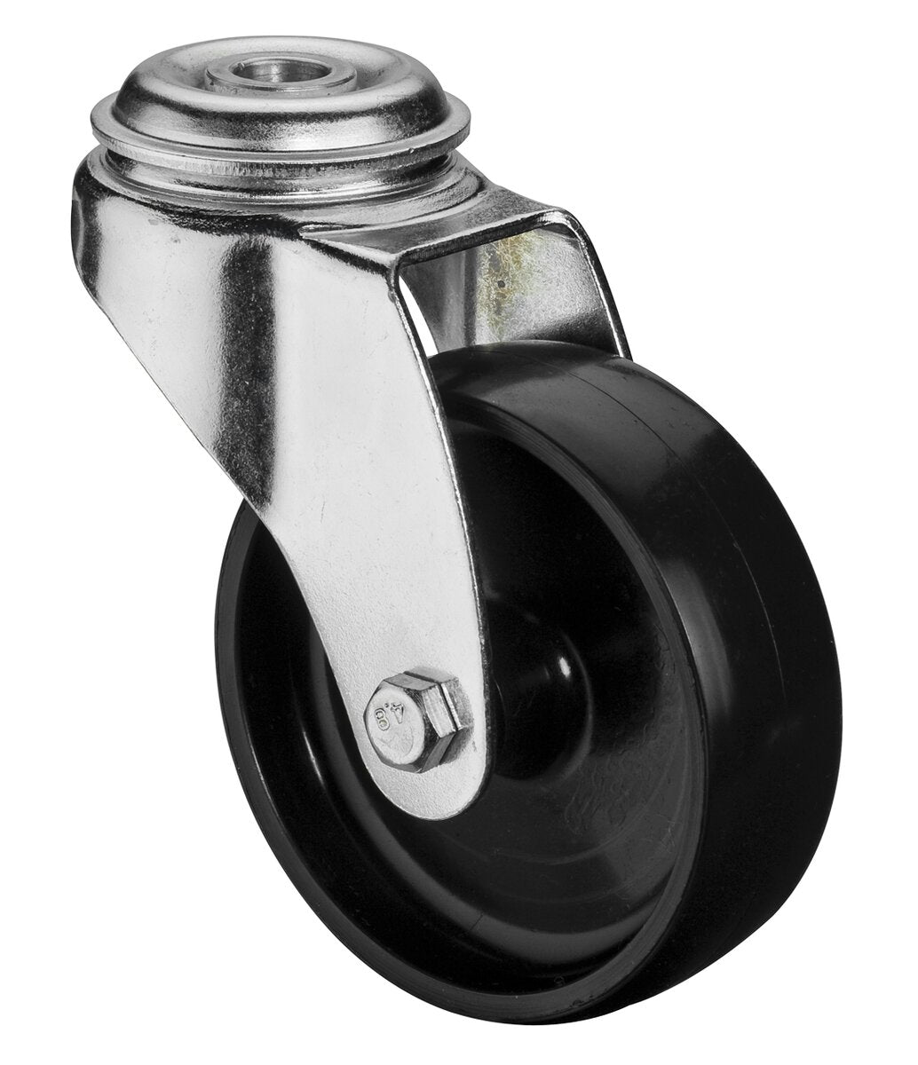 Apparathjul A301.A90.050, Produkttype: Svingbare hjul, Festing: Senterhull, Hjulets senter: Plast, Slitebane: Svart plast, Lager: Glidelager, Ø hjul: 50 mm, Lastkapasitet: 50 kg