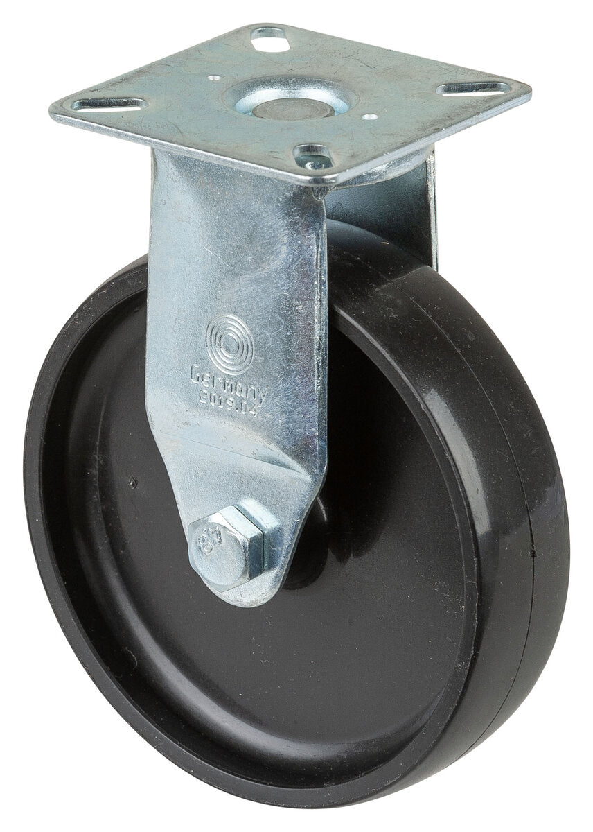 Apparathjul A310.A90.100, Produkttype: Faste hjul, Festing: Platefeste, Ø skruehull: 6.3 mm, Hjulets senter: Plast, Slitebane: Svart plast, Lager: Glidelager, Ø hjul: 100 mm, Lastkapasitet: 65 kg