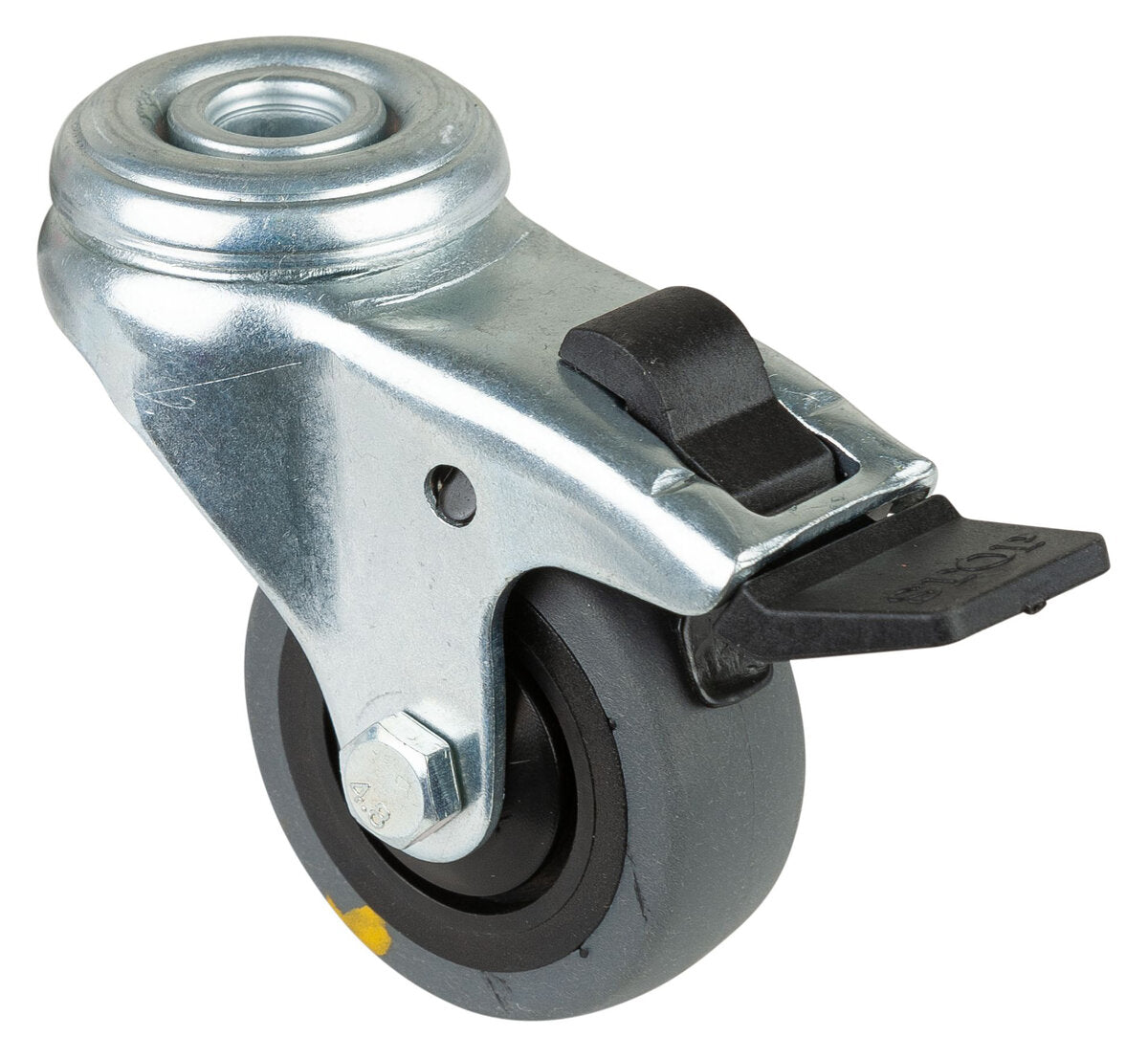 Apparathjul A321.A89.050, Produkttype: Svingbare hjul med bremser, Festing: Senterhull, Hjulets senter: Plast, Slitebane: termoplastisk gummi grå, elektrisk ledende, Lager: Kulelager, Ø hjul: 50 mm, Lastkapasitet: 50 kg
