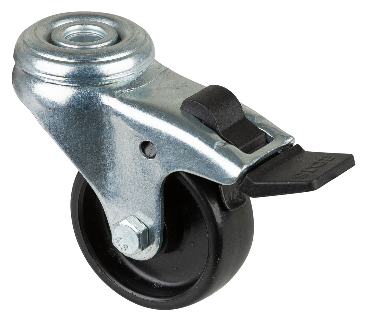 Apparathjul A321.A90.050, Produkttype: Svingbare hjul med bremser, Festing: Senterhull, Hjulets senter: Plast, Slitebane: Svart plast, Lager: Glidelager, Ø hjul: 50 mm, Lastkapasitet: 50 kg