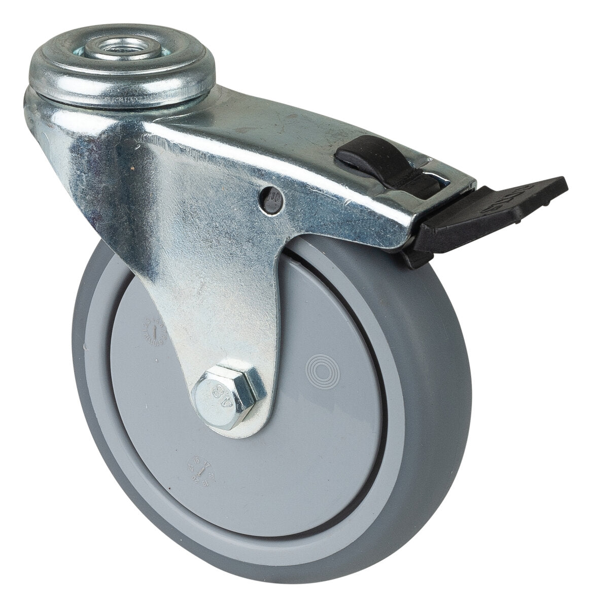 Apparathjul A324.A85.100, Produkttype: Svingbare hjul med bremser, Hjulets senter: Plast, Slitebane: termoplastisk gummi grå, Lager: Kulelager, Ø hjul: 100 mm, Lastkapasitet: 90 kg