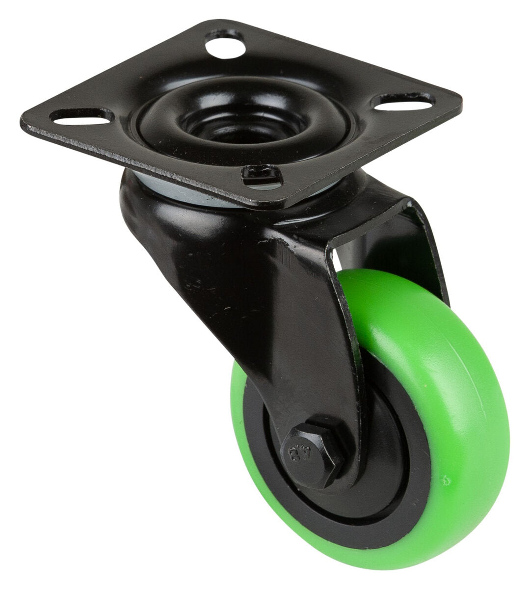 Apparathjul A800.A85.051.04, Produkttype: Svingbare hjul, Hjulets senter: Svart plast, Slitebane: termoplastisk gummi grønn, Lager: Kulelager, Ø hjul: 50 mm, Lastkapasitet: 50 kg