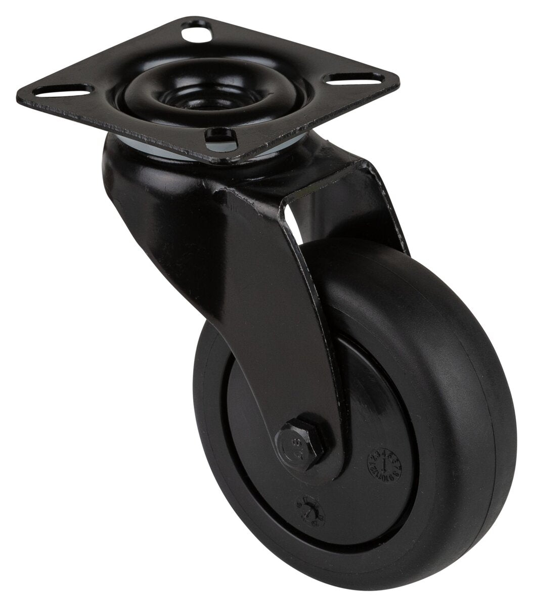Apparathjul A800.A85.075.06, Produkttype: Svingbare hjul, Festing: Platefeste, Hjulets senter: Svart plast, Slitebane: termoplastisk gummi svart, Lager: Kulelager, Ø hjul: 75 mm, Lastkapasitet: 75 kg