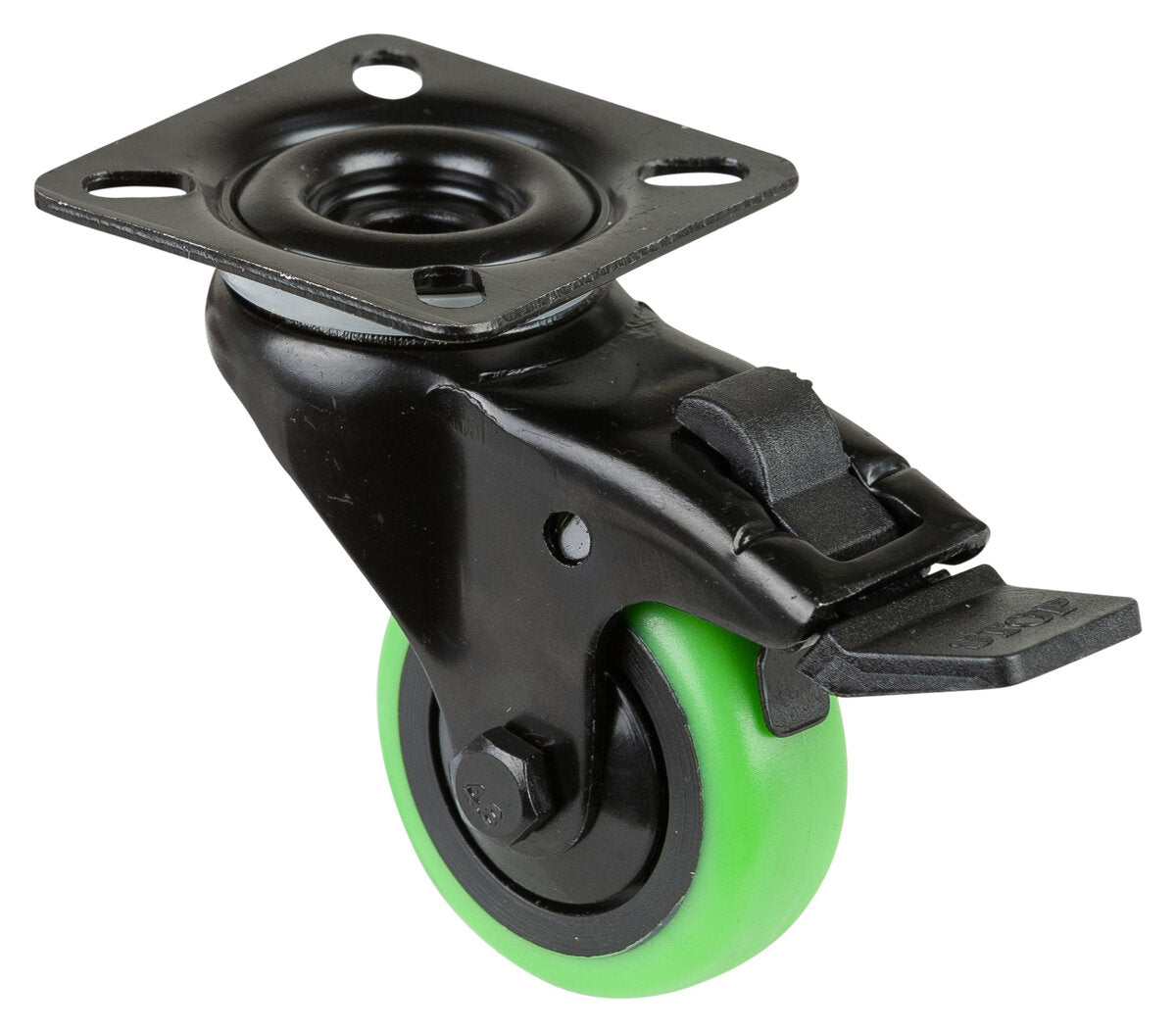 Apparathjul A820.A85.051.04, Produkttype: Svingbare hjul med totalbrems, Hjulets senter: Svart plast, Slitebane: termoplastisk gummi grønn, Lager: Kulelager, Ø hjul: 50 mm, Lastkapasitet: 50 kg