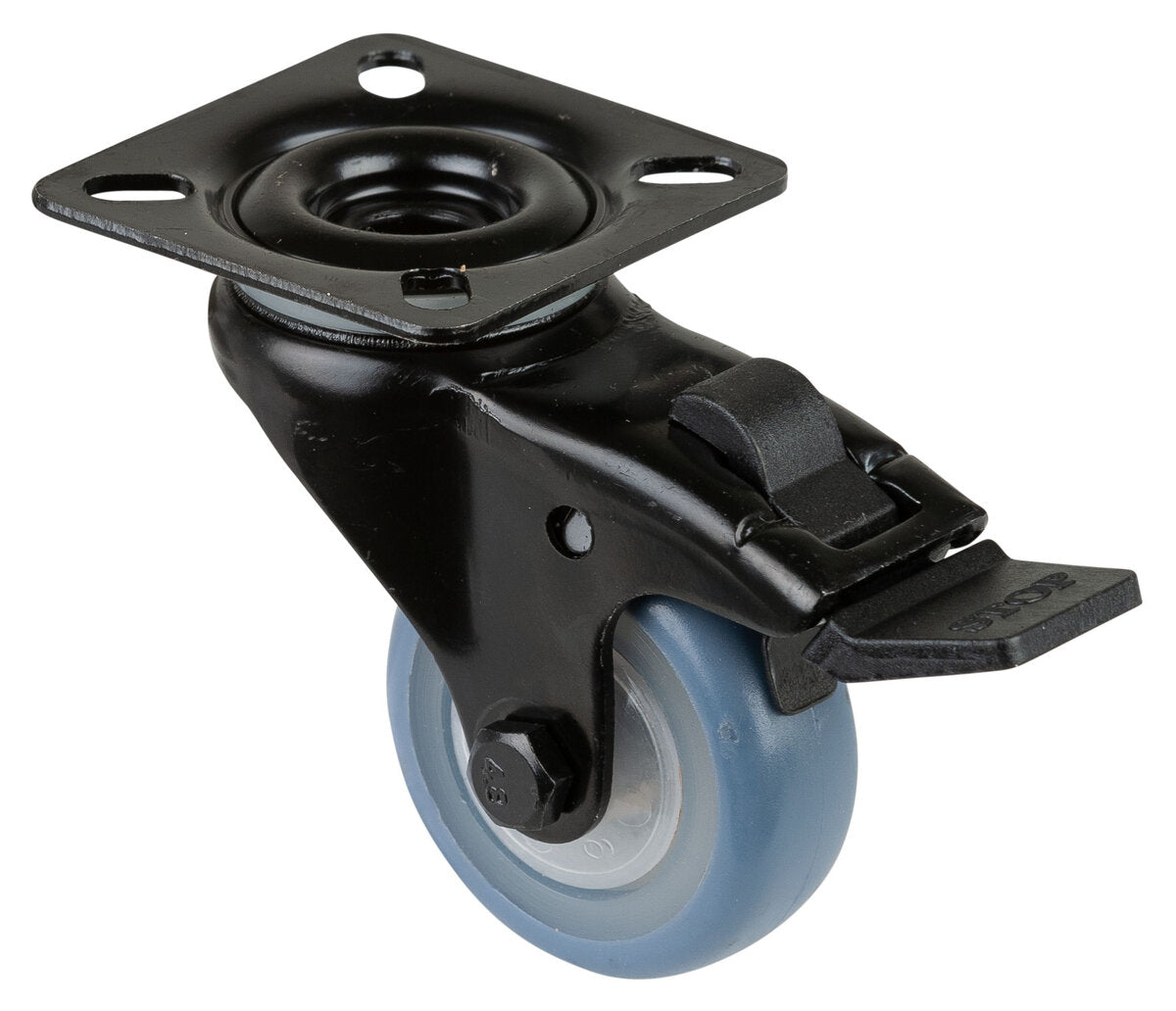 Apparathjul A820.A85.051.05, Produkttype: Svingbare hjul med totalbrems, Hjulets senter: Naturfarget plast, Slitebane: termoplastisk gummi lyseblå, Lager: Kulelager, Ø hjul: 50 mm, Lastkapasitet: 50 kg