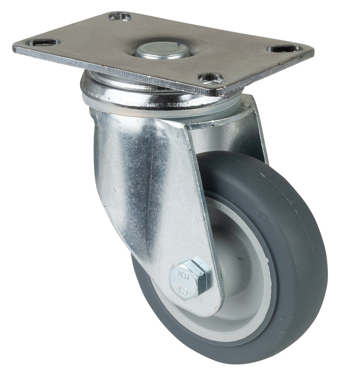 Apparathjul C100.A80.081, Produkttype: Svingbare hjul, Festing: Platefeste, Ø skruehull: 8.4 mm, Hjulets senter: Plast, Slitebane: termoplastisk gummi grå, Lager: Glidelager, Ø hjul: 80 mm, Lastkapasitet: 80 kg