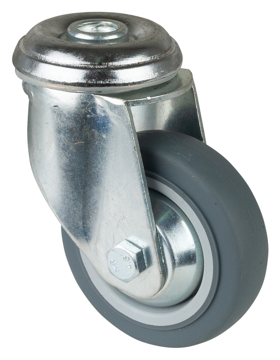 Apparathjul C104.A85.081, Produkttype: Svingbare hjul, Hjulets senter: Plast, Slitebane: termoplastisk gummi grå, Lager: Kulelager (80, 150 mm Ø med gjengebeskyttelse i metall), Ø hjul: 80 mm, Lastkapasitet: 80 kg