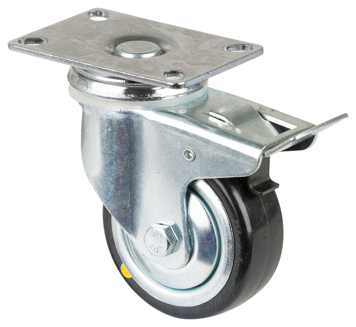 Apparathjul C120.A89.080, Produkttype: Svingbare hjul med bremser, Festing: Platefeste, Ø skruehull: 8.4 mm, Hjulets senter: Plast, Slitebane: termoplastisk gummi grå, elektrisk ledende, Lager: Kulelager, Ø hjul: 80 mm, Lastkapasitet: 80 kg