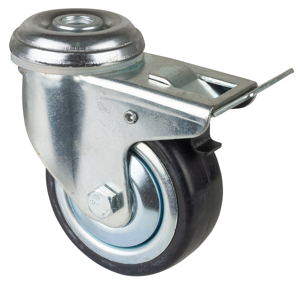 Apparathjul C122.A89.080, Produkttype: Svingbare hjul med bremser, Hjulets senter: Plast, Slitebane: termoplastisk gummi grå, elektrisk ledende, Lager: Kulelager, Ø hjul: 80 mm, Lastkapasitet: 80 kg