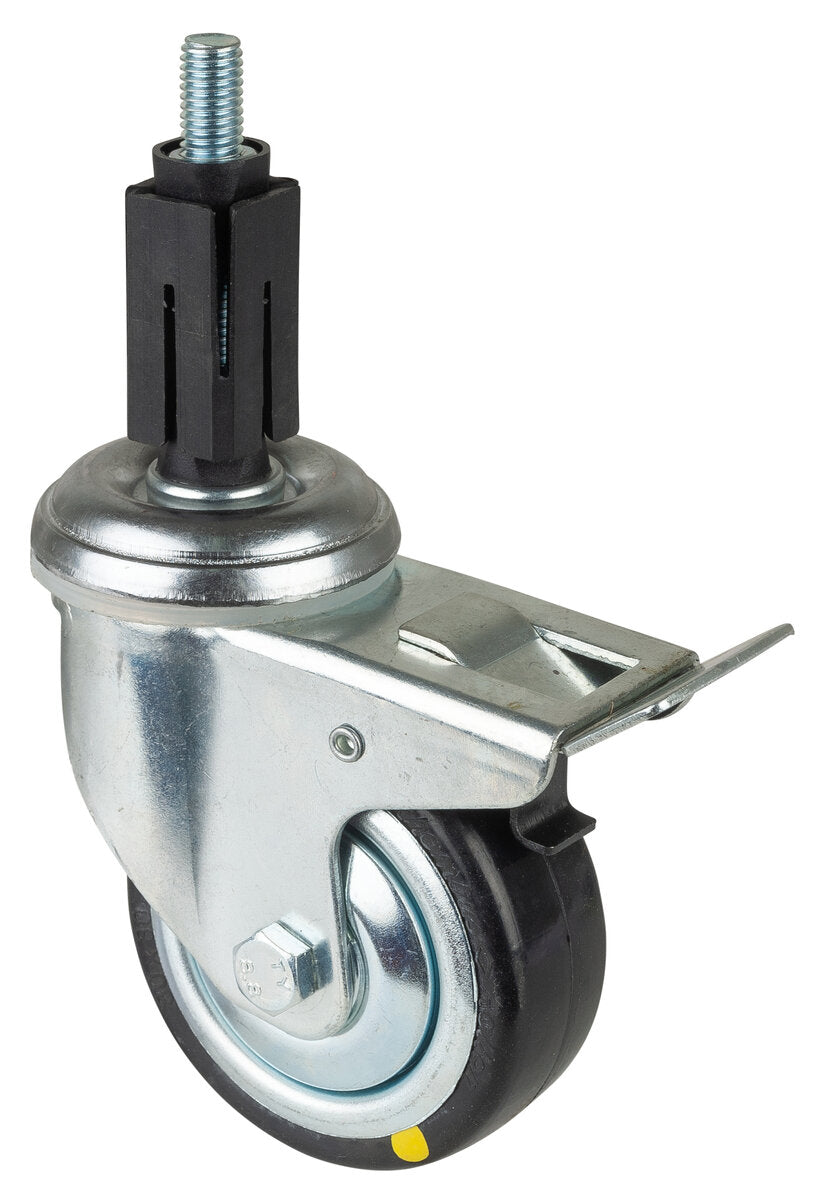 Apparathjul C124.A89.080, Produkttype: Svingbare hjul med bremser, Hjulets senter: Plast, Slitebane: termoplastisk gummi grå, elektrisk ledende, Lager: Kulelager, Ø hjul: 80 mm, Lastkapasitet: 80 kg