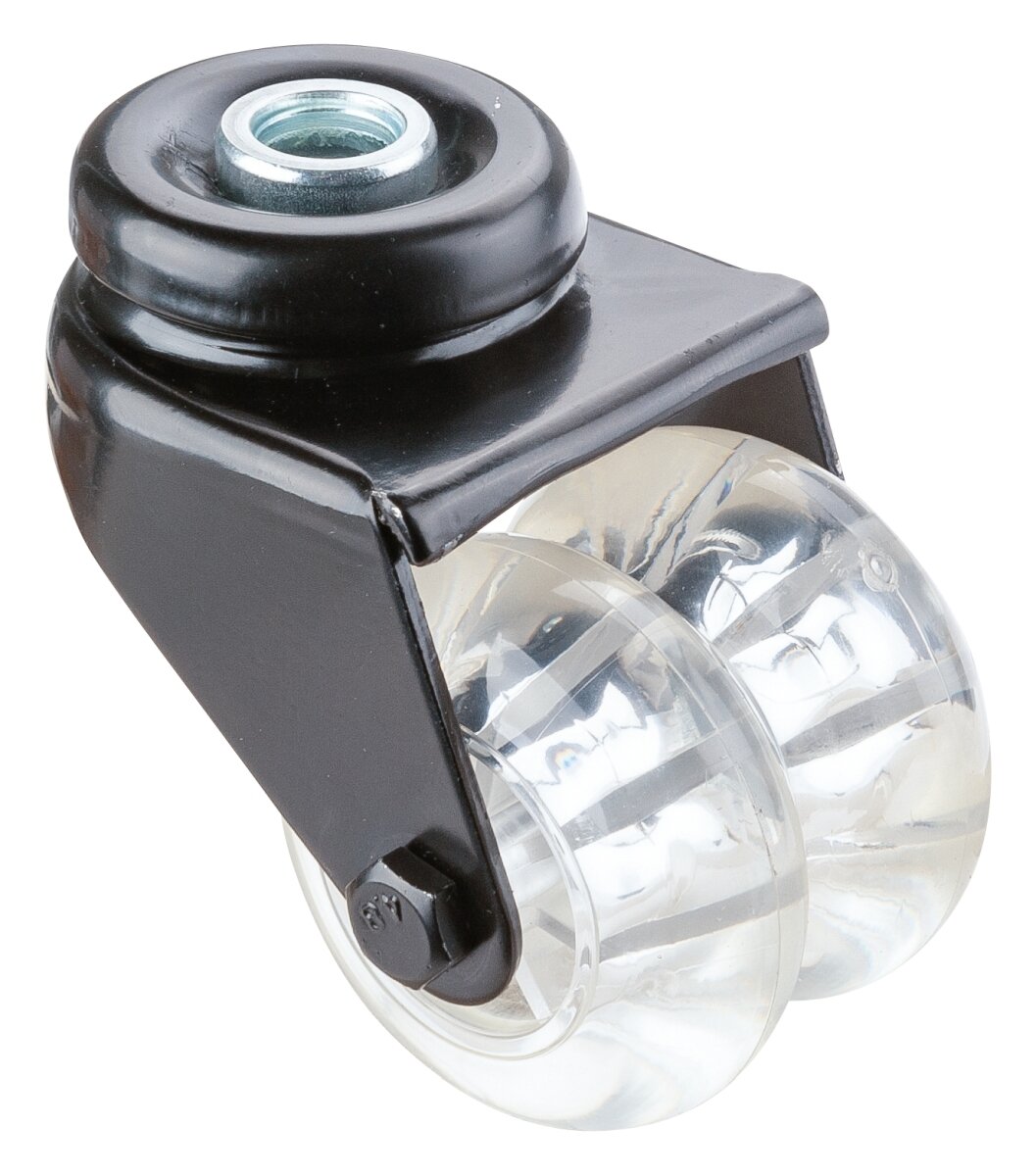 Apparathjul - dobbel B801.A73.050, Produkttype: Svingbare hjul, Hjulets senter: Plast, Slitebane: Plast, Lager: Glidelager, Ø hjul: 50 mm, Lastkapasitet: 80 kg