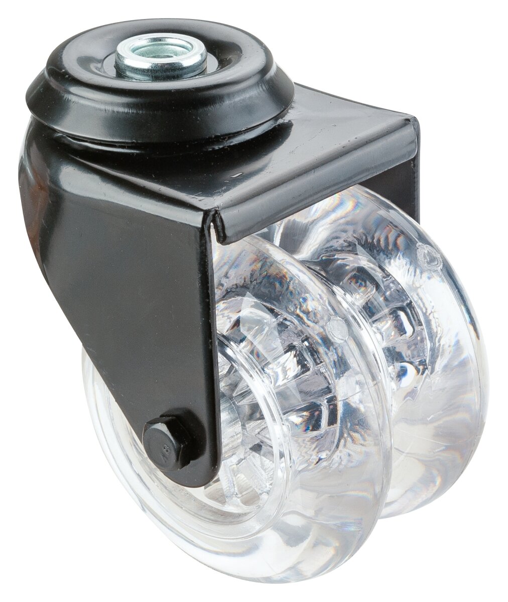 Apparathjul - dobbel B801.A73.075, Produkttype: Svingbare hjul, Hjulets senter: Plast, Slitebane: Plast, Lager: Glidelager, Ø hjul: 75 mm, Lastkapasitet: 100 kg