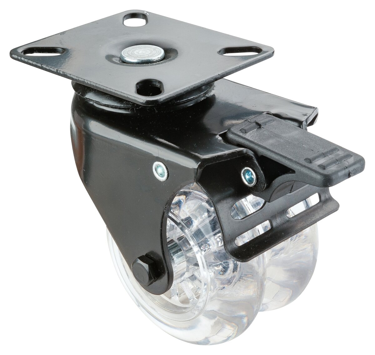 Apparathjul - dobbel B820.A73.075, Produkttype: Svingbare hjul med bremser, Hjulets senter: Plast, Slitebane: Plast, Lager: Glidelager, Ø hjul: 75 mm, Lastkapasitet: 100 kg