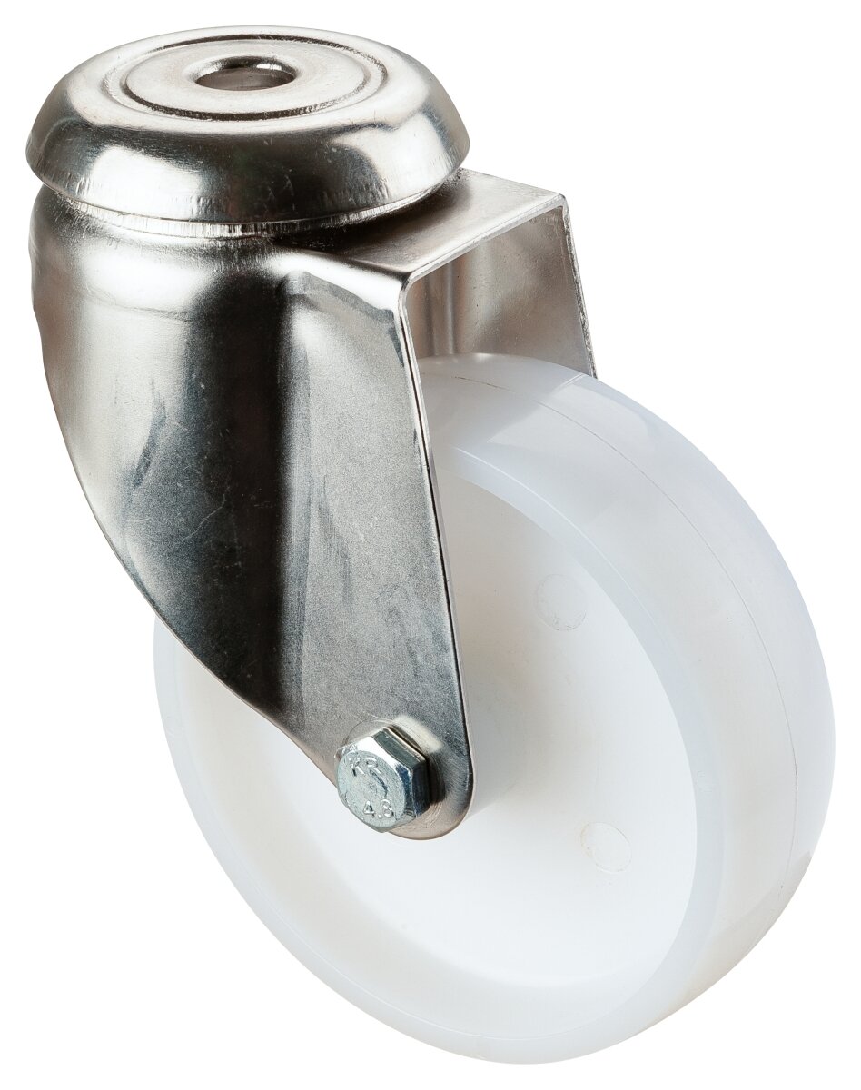 Apparathjul - Rustfri G101.A90.102, Produkttype: Svingbare hjul, Hjulets senter: Plast, Slitebane: Plast, Lager: Glidelager, Ø hjul: 100 mm, Lastkapasitet: 100 kg