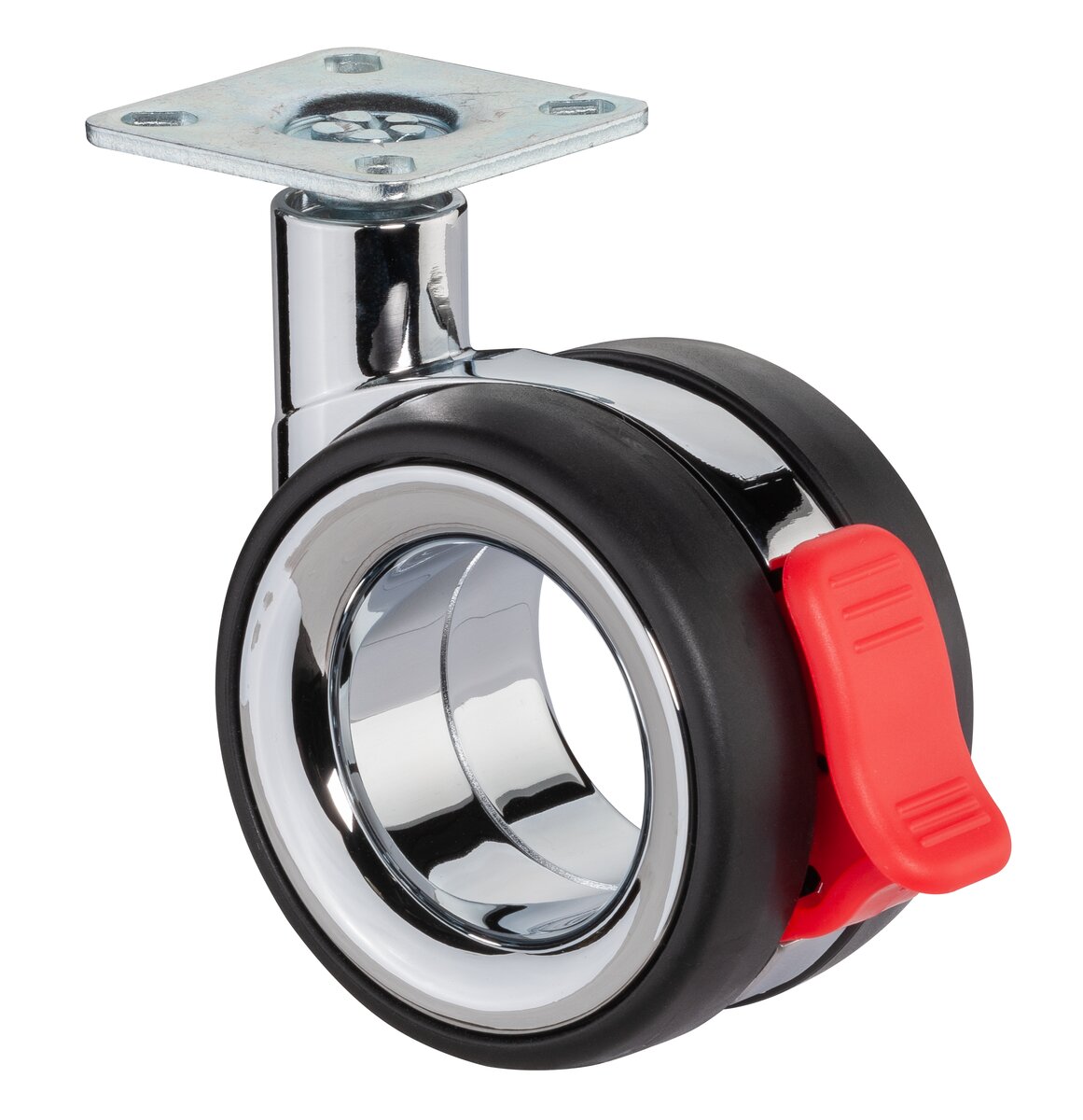 Design hjul - dobbel med bremser F351.075, Produkttype: Svingbare hjul med bremser, Ø hjul: 75 mm, Lastkapasitet: 85 kg, Festing: Platefeste, Ø skruehull: 6 mm