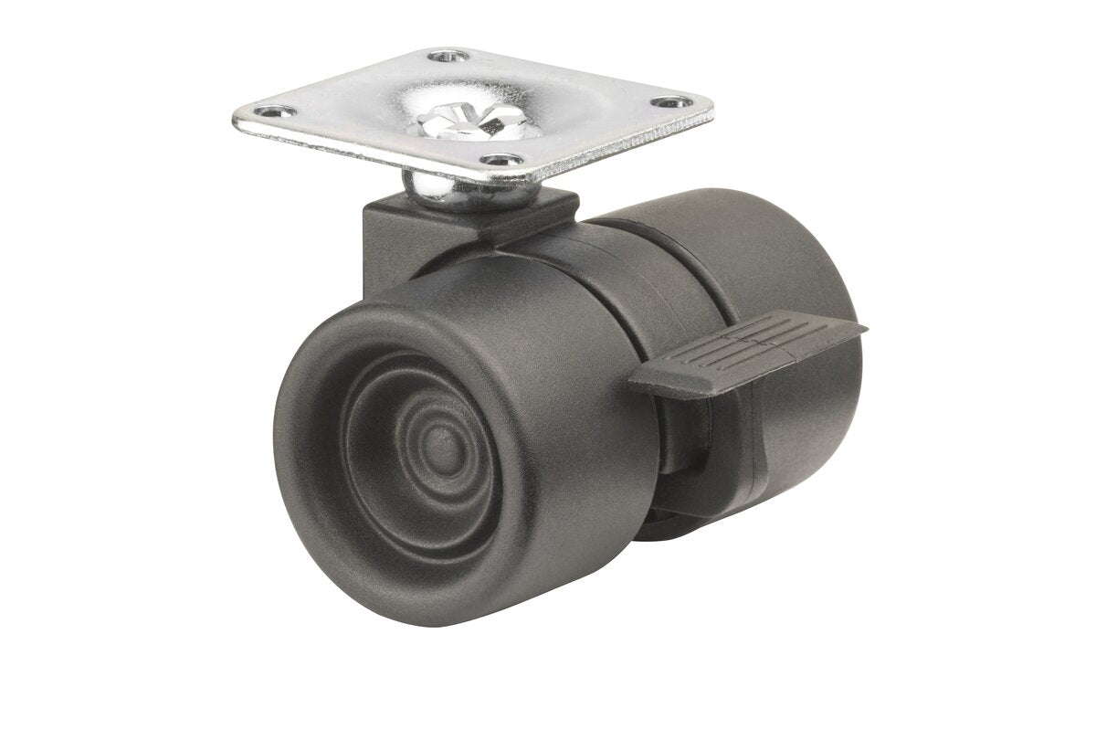 Dobbelthjul i plast med bremser F391.038, Produkttype: Svingbare hjul med bremser, Ø hjul: 38 mm, Lastkapasitet: 75 kg, Festing: Platefeste, Ø skruehull: 6 mm
