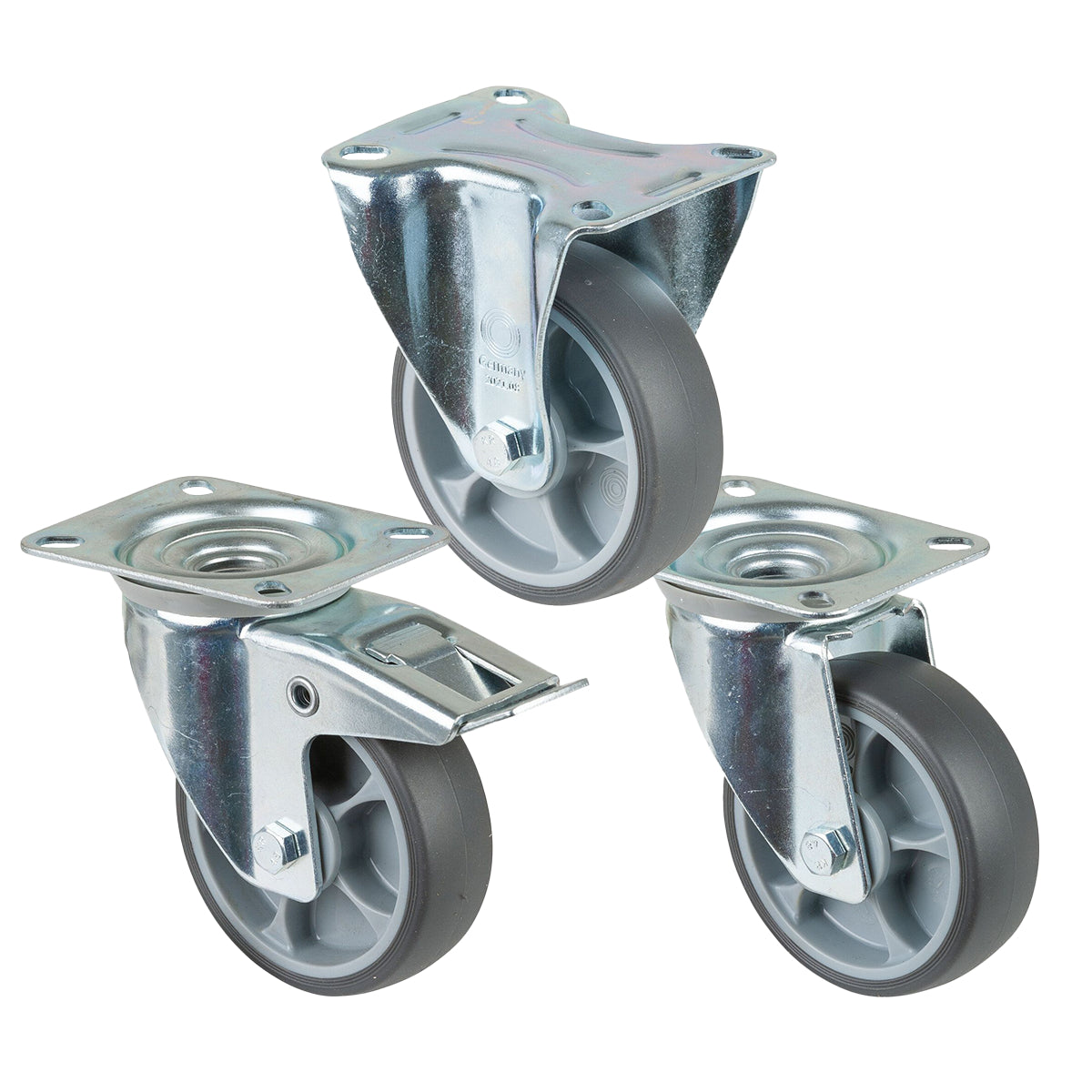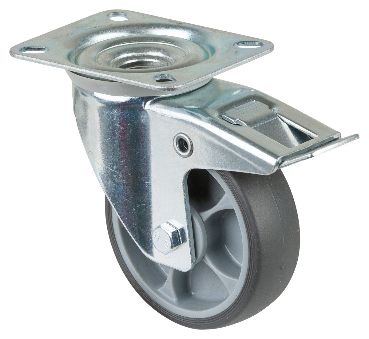 Tilgjengelig i varianter som svingbart med plate, fast med plate, og svingbart med brems, gir dette hjulet allsidighet i montering og bruk. Det har høy slitestyrke og lav rullemotstand.