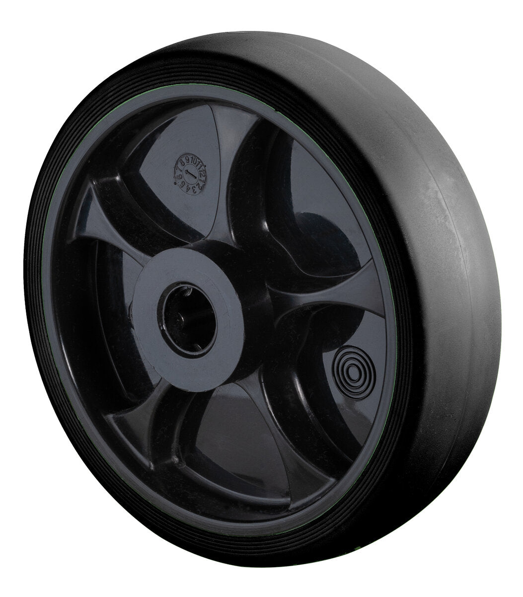 Gummihjul B44.081.F006, Produkttype: Hjul, Hjulets senter: Svart plast, Slitebane: termoplastisk gummi svart, Lager: Rullelager, Ø hjul: 80 mm, Lastkapasitet: 100 kg
