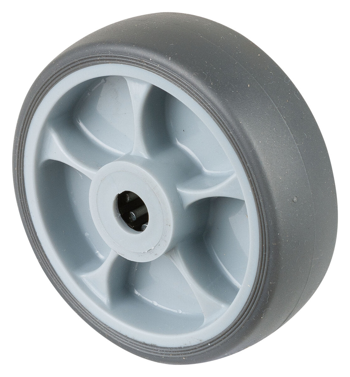 Gummihjul B44.101, Produkttype: Hjul, Hjulets senter: Plast, Slitebane: termoplastisk gummi grå, Lager: Rullelager, Ø hjul: 100 mm, Lastkapasitet: 110 kg