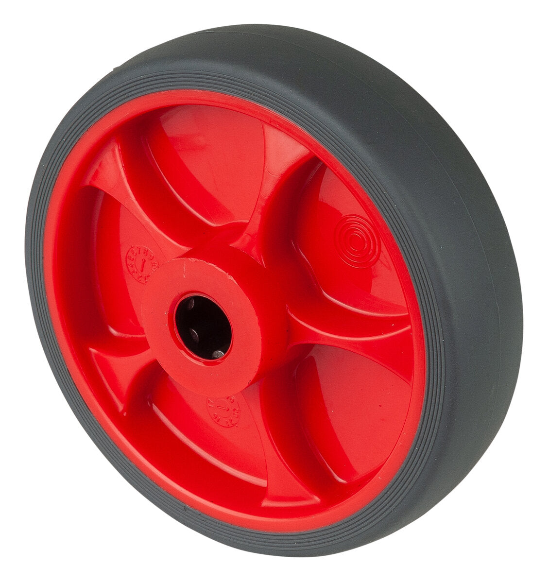 Gummihjul B44.126.F003, Produkttype: Hjul, Hjulets senter: Rød plast, Slitebane: termoplastisk gummi grå, Lager: Rullelager, Ø hjul: 125 mm, Lastkapasitet: 120 kg