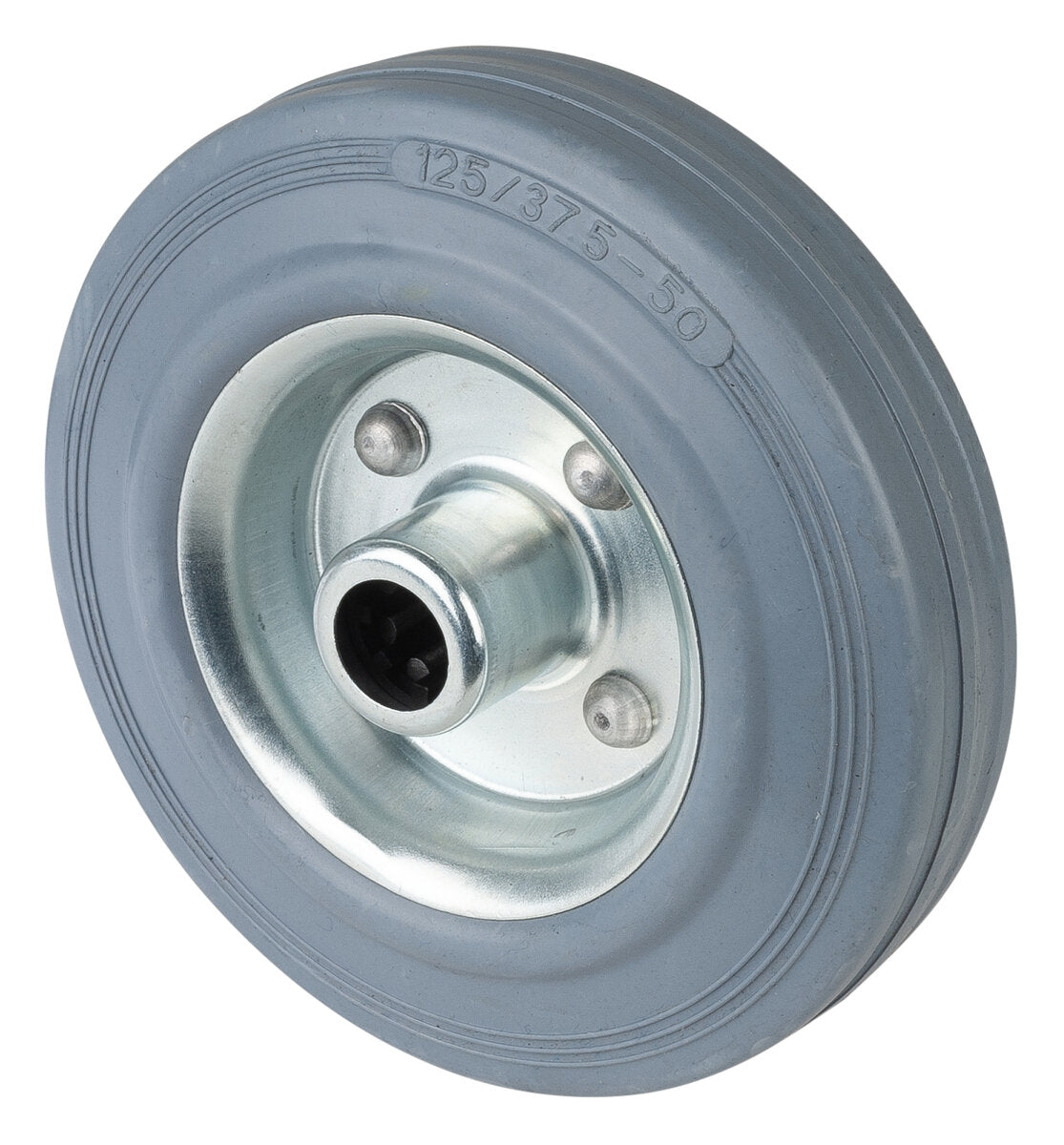 Gummihjul B56.125, Produkttype: Hjul, Hjulets senter: Felg av galvanisert stål, Slitebane: Gummi grå, Lager: Rullelager, Ø hjul: 125 mm, Lastkapasitet: 100 kg