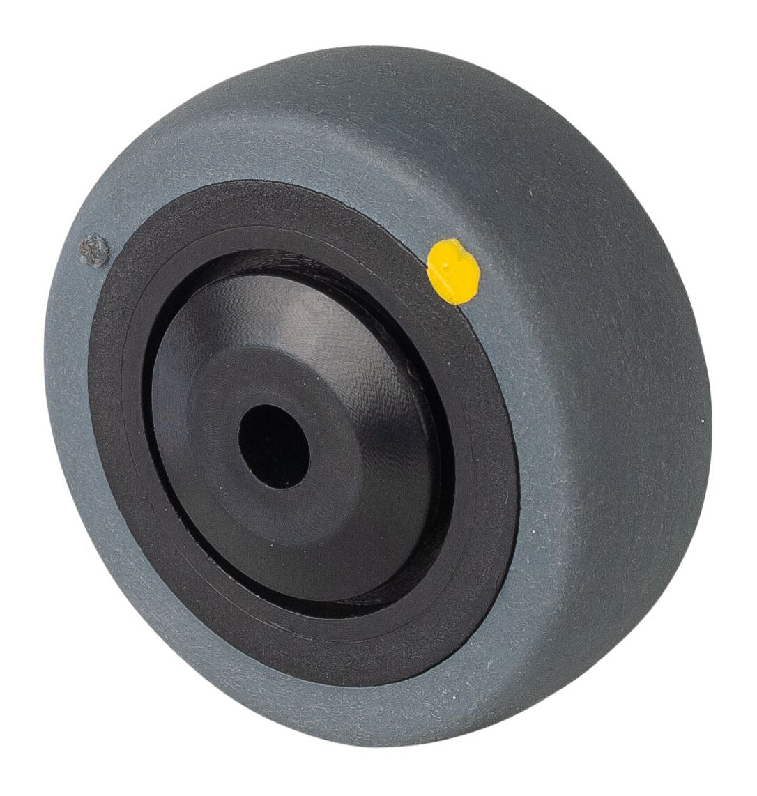 Gummihjul som er elektrisk ledende A89.050, Produkttype: Hjul, Hjulets senter: Plast, Slitebane: termoplastisk gummi grå, Lager: Kulelager, Ø hjul: 50 mm, Lastkapasitet: 40 kg