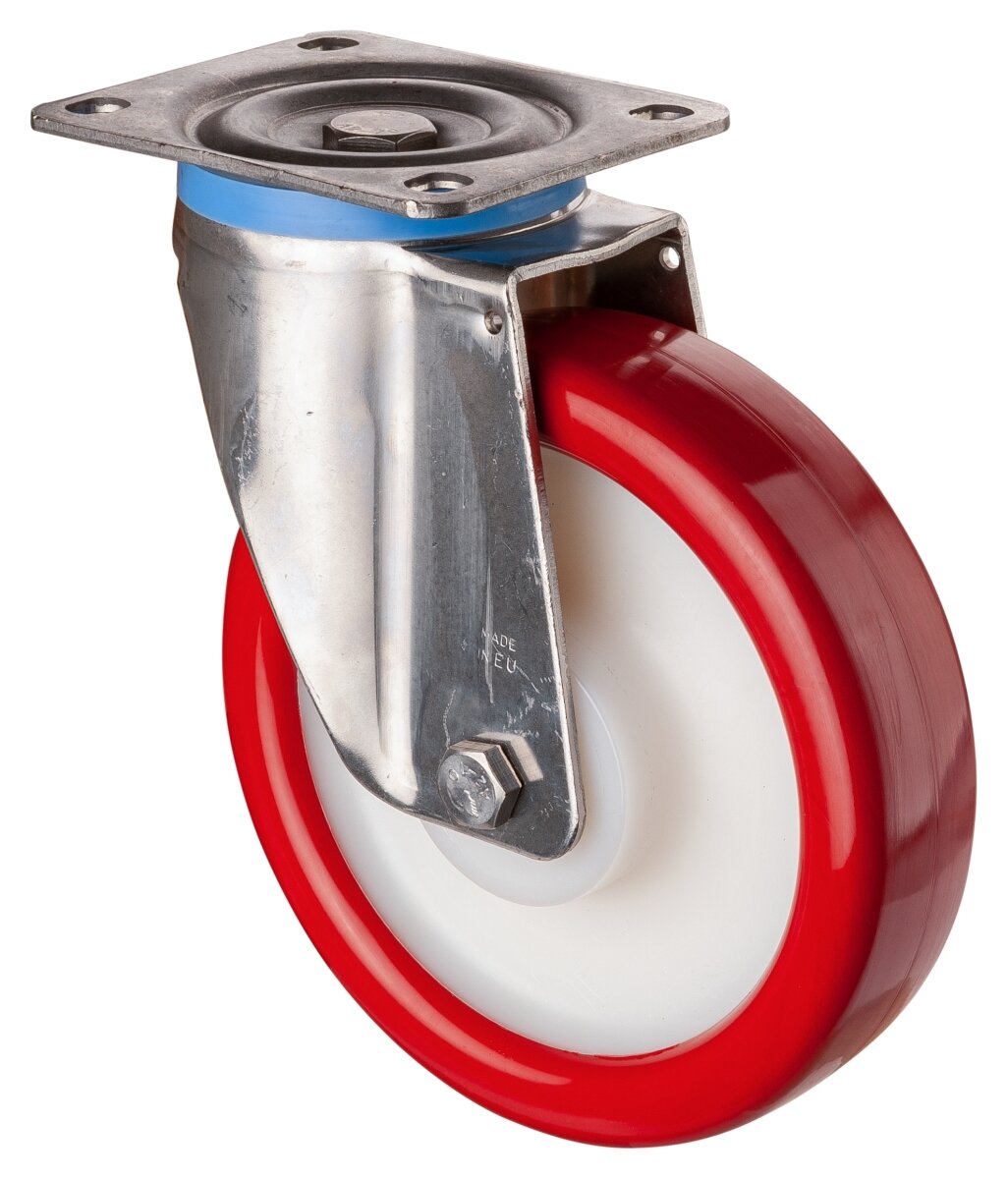 Oppdag våre kraftige svingbare hjul HS100.B27.202, designet for krevende industrielle miljøer. Med en diameter på 200 mm og en imponerende lastkapasitet på 700 kg, sikrer disse hjulene stabilitet og manøvrerbarhet. Hjulene har en slitebane i polyuretan med en hardhet på 95 Shore A, som gir utmerket slitestyrke og kontroll på ulike underlag. Det rustfrie hjulets plast-senter og glidelager gir pålitelig drift over tid, noe som gjør dem ideelle for lagre, verksteder og andre proffmiljøer. Velg HS100.B27.202 for effektive transportløsninger.