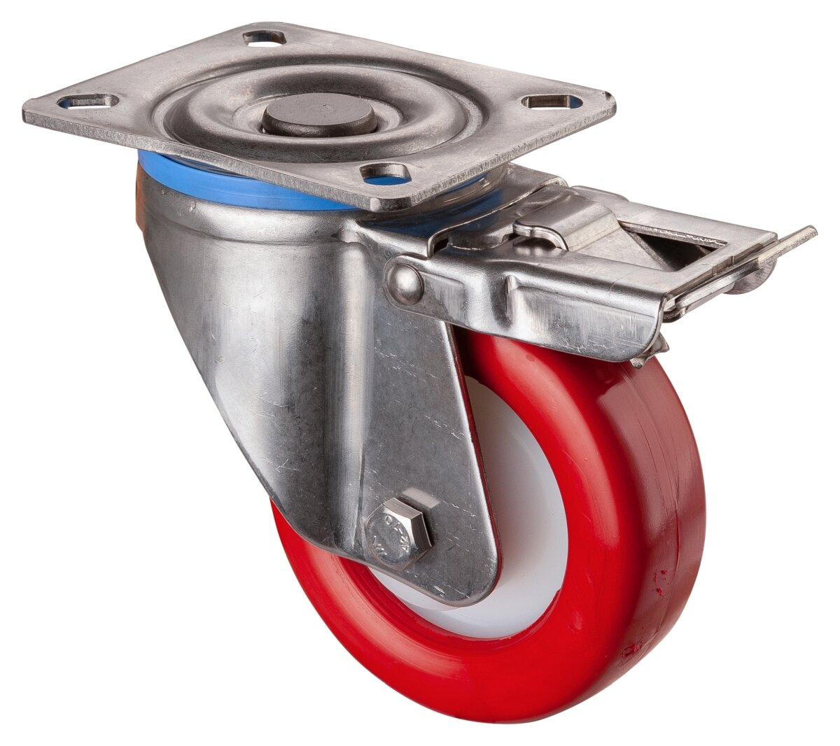 Vi presenterer det rustfrie svingbare hjulet HS120.B27.101, designet for krevende industrielle miljøer. Med en diameter på 100 mm og en imponerende lastkapasitet på 250 kg, gir dette hjulet optimal stabilitet og manøvrerbarhet. Slitebanen i polyuretan (95 Shore A) sikrer god grepsytelse og lang holdbarhet, mens glidelageret gir jevn drift og pålitelig kontroll. Hjul med totalbrems muliggjør sikker fiksering av transporterte enheter. HS120.B27.101 er det ideelle valget for lagre, verksteder og industribruk, der kvalitet og prestasjon er avgjørende.