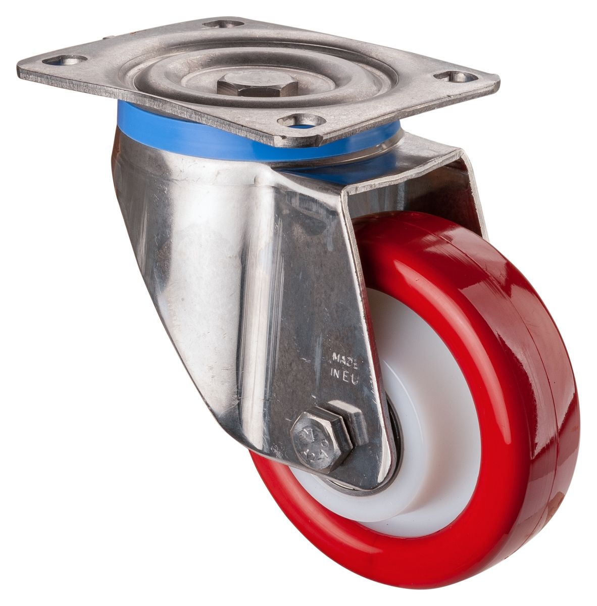 Oppdag rustfrie HS100.B71.125 svingbare hjul, ideelle for krevende industrielle miljøer. Med en diameter på 125 mm og en imponerende lastkapasitet på 300 kg, gir disse hjulene optimal manøvrerbarhet og stabilitet. Hjulenes senter er laget av holdbar polyamid, mens slitebanen i rød polyuretan (95 +/- 3 Shore A) sikrer høy slitestyrke og kontroll under bruk. Kulelageret i rustfritt stål bidrar til pålitelig drift i tøffe forhold. Perfekte for lagring, verksteder og industriell bruk, hvor kvalitet og ytelse er avgjørende.