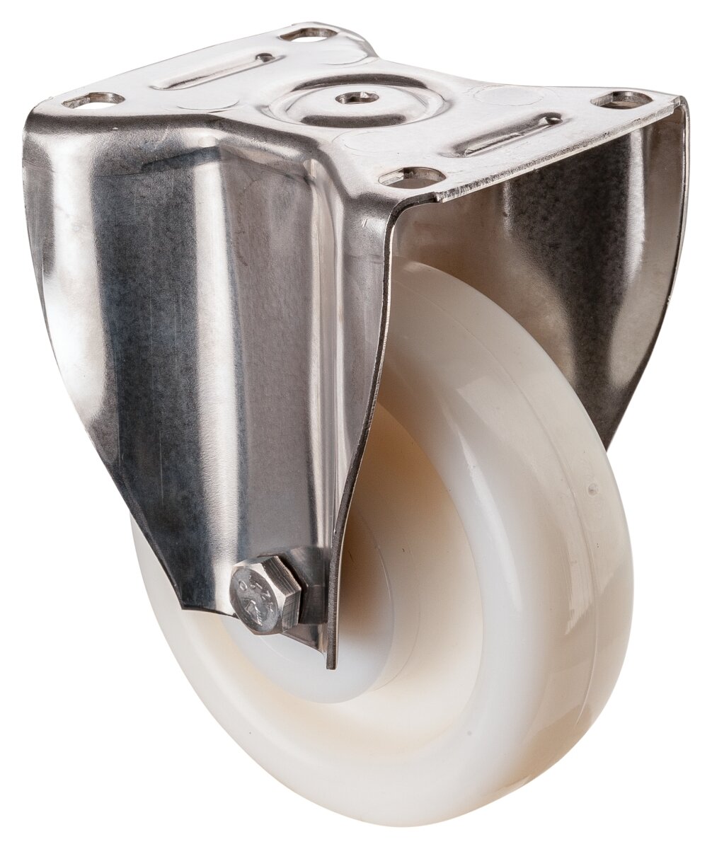 Kraftige HS110.B14.153 faste hjul er ideelle for profesjonelt bruk innen lager, verksted og industri. Med en diameter på 150 mm og en imponerende lastkapasitet på 450 kg, gir disse hjulene utmerket manøvrerbarhet og stabilitet i tyngre applikasjoner. Sentrert med polyamid for redusert slitasje og utstyrt med rullelager i rustfritt stål, sikrer de pålitelighet og lang levetid. Hjulenes slitebane er også av polyamid, noe som bidrar til både kontroll og beskyttelse av underlaget, og gjør dem til et solid valg for krevende omgivelser.