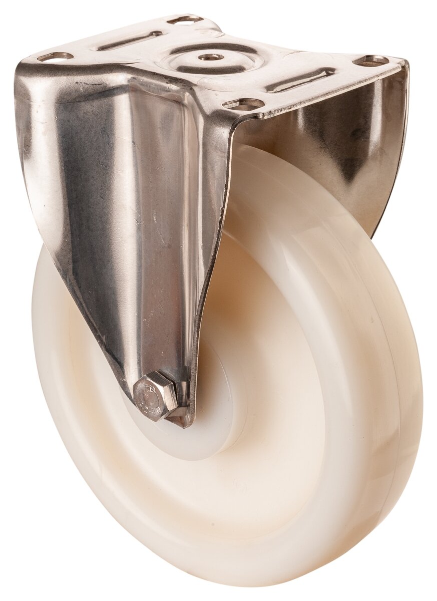 Oppdag rustfri HS110.B14.202 faste hjul, designet for proffmarkedet med høy ytelse og pålitelighet. Med en diameter på 200 mm og en imponerende lastkapasitet på 700 kg, er disse hjulene ideelle for lager, verksted og industri. Hjulene har en solid senter i polyamid og en slitesterk slitebane, noe som gir utmerket manøvrerbarhet og stabilitet. Rullelageret i rustfritt stål sikrer smidig kontroll og langvarig drift, selv under tunge belastninger. Velg HS110.B14.202 for pålitelige løsninger i krevende miljøer.