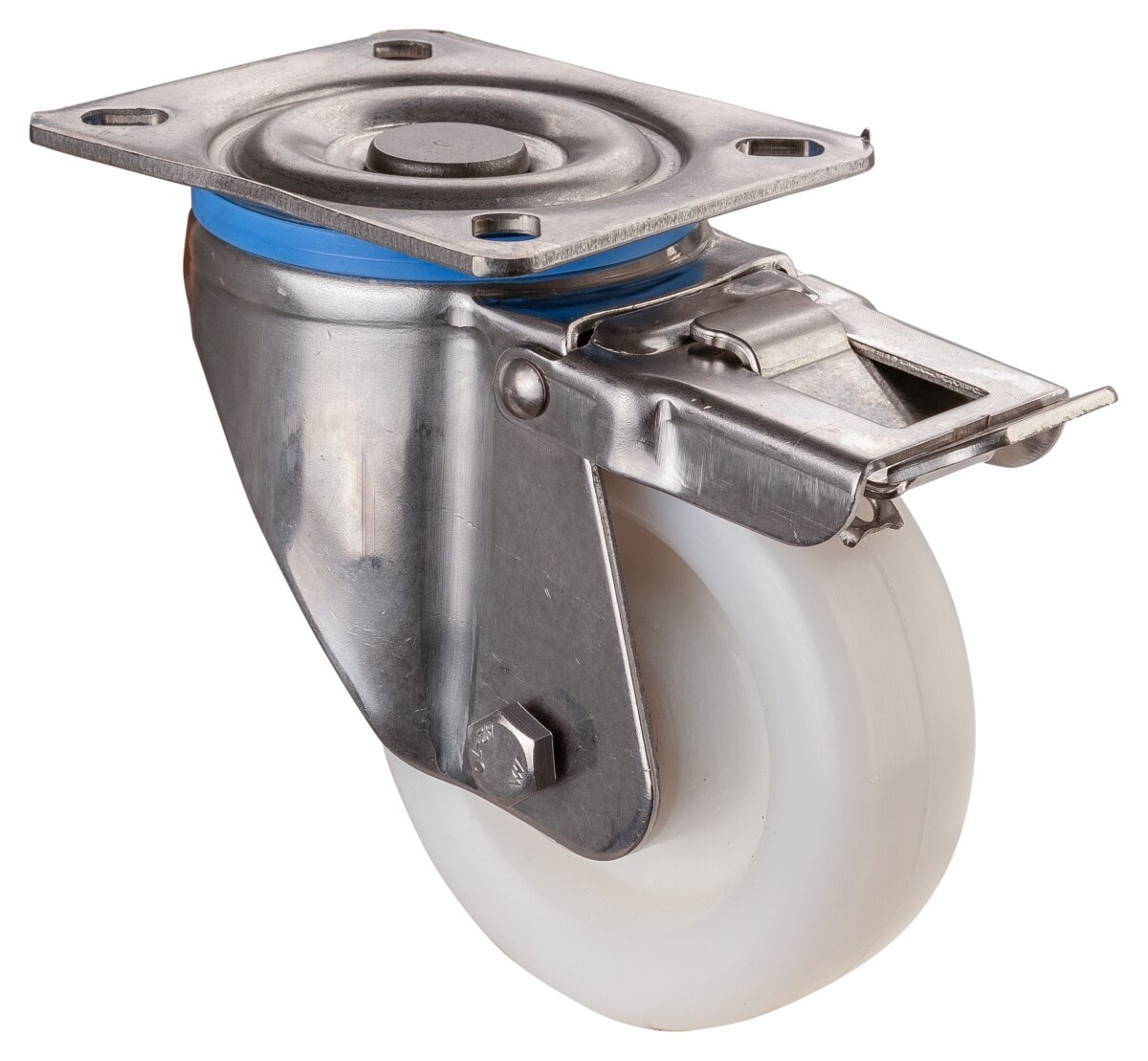 Oppdag våre rustfrie svingbare hjul HS120.B14.101, ideelle for krevende industrielle miljøer. Med en diameter på 100 mm og en imponerende lastkapasitet på 300 kg, gir disse hjulene overlegen manøvrerbarhet og stabilitet. Hjulets slitebane og senter er laget av slitesterk polyamid, noe som sikrer kontroll og pålitelighet under bruk. Rullelageret i rustfritt stål ytterligere forsterker holdbarheten, noe som gjør disse hjulene til et perfekt valg for lager, verksted og industri. Invester i kvalitet og effektivitet med våre robuste komponenter.