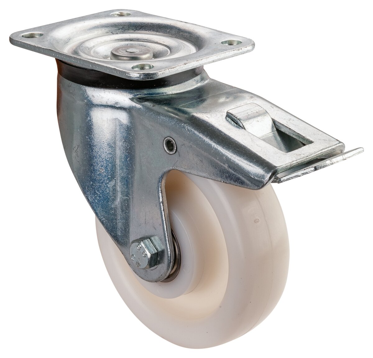 Kraftige hjul L620.B15.153, Produkttype: Svingbare hjul med totalbrems, Hjulets senter: Plast, Slitebane: Polyamid, Lager: Kulelager, Ø hjul: 150 mm, Lastkapasitet: 900 kg