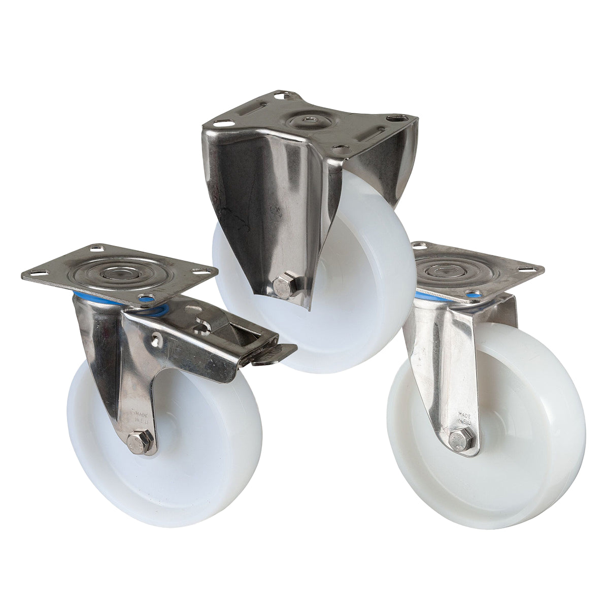 Rustfritt Nylonhjul | 125 mm | 130 kg