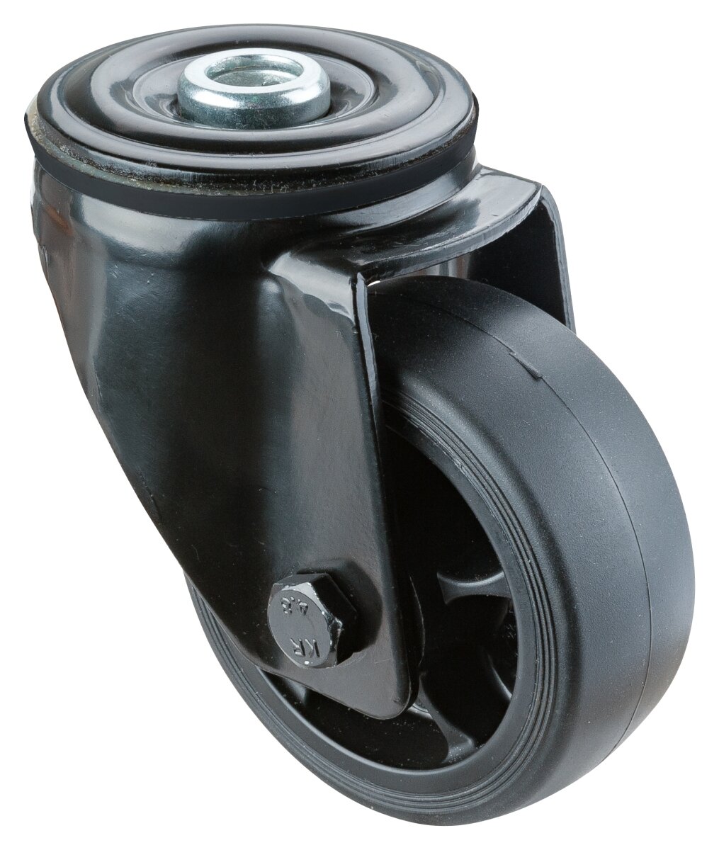 Transporthjul L801.B44.081.06, Produkttype: Svingbare hjul, Hjulets senter: Svart plast, Slitebane: termoplastisk gummi svart, Lager: Rullelager, Ø hjul: 80 mm, Lastkapasitet: 100 kg