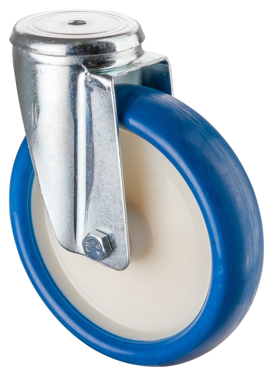 Transporthjul L101.B36.201, Produkttype: Svingbare hjul, Hjulets senter: Polyamid, Slitebane: Polyuretan blå 85 +/-4 Shore A, Lager: Rullelager, Ø hjul: 200 mm, Lastkapasitet: 250 kg