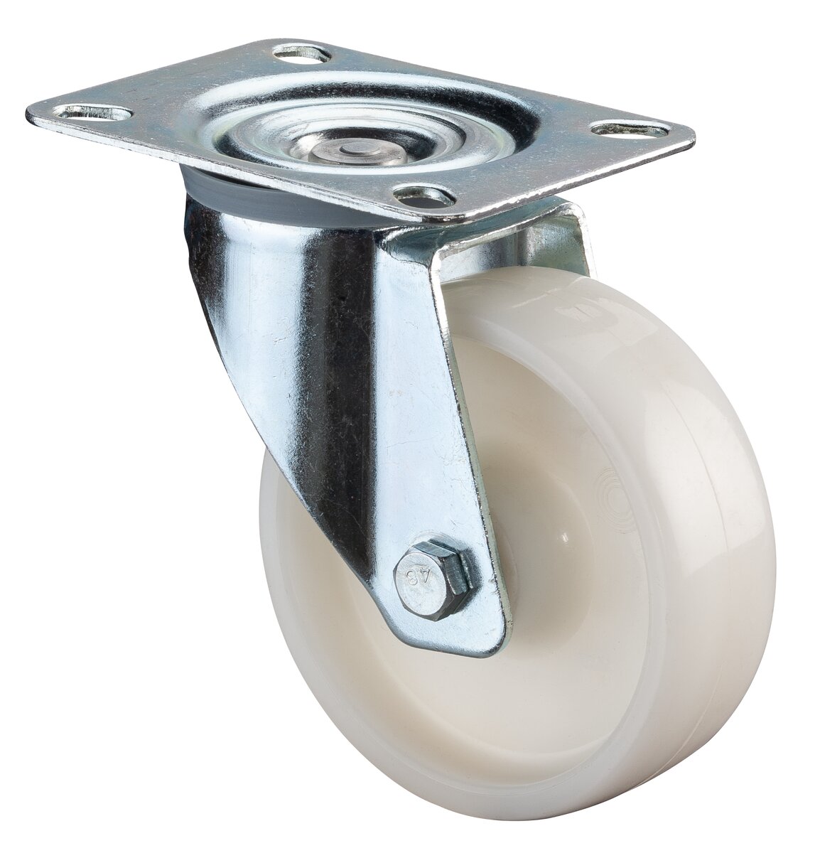 Transporthjul L400.B10.100SO, Produkttype: Svingbare hjul, Ø skruehull: 9 mm, Hjulets senter: Plast, Slitebane: Plast, Lager: Rullelager, Ø hjul: 100 mm, Lastkapasitet: 200 kg kg, Plate størrelse: 105x80 mm, Total høyde: 125 mm, Projeksjon: 34 mm