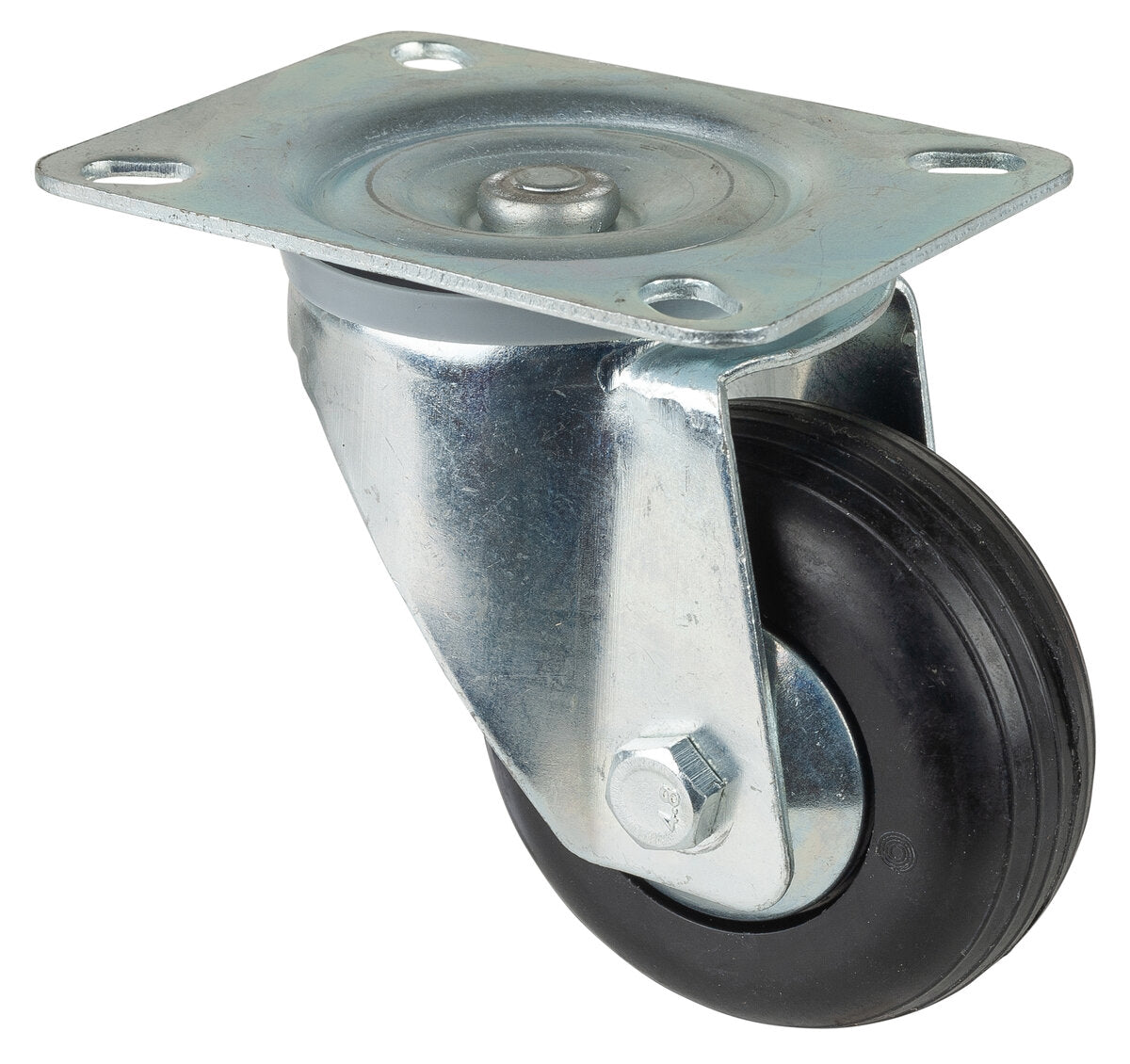 Transporthjul L400.B40.081, Produkttype: Svingbare hjul, Festing: Platefeste, Ø skruehull: 9 mm, Hjulets senter: Plast, Slitebane: Svart gummi, Lager: Glidelager, Ø hjul: 80 mm, Lastkapasitet: 100 kg