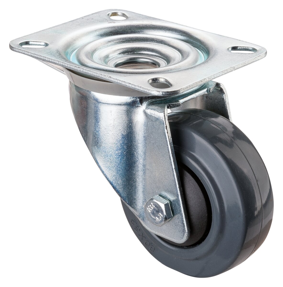 Transporthjul L400.B67.080, Produkttype: Svingbare hjul, Hjulets senter: Plast, Slitebane: Elastisk gummi grå, Lager: Kulelager, Ø hjul: 80 mm, Lastkapasitet: 120 kg