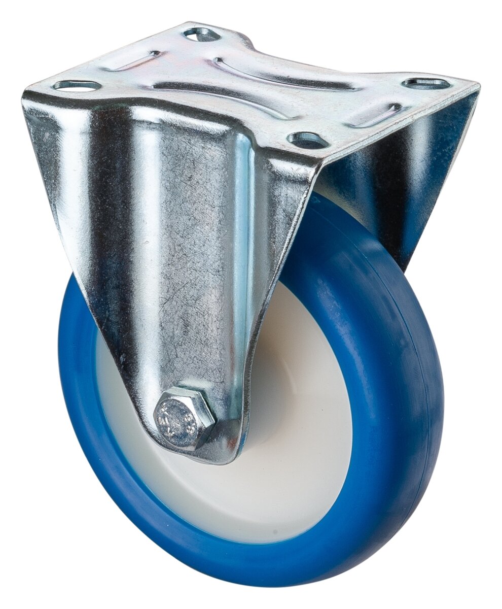 Transporthjul L410.B36.126, Produkttype: Faste hjul, Hjulets senter: Polyamid, Slitebane: Polyuretan blå 85 +/-4 Shore A, Lager: Rullelager, Ø hjul: 125 mm, Lastkapasitet: 150 kg