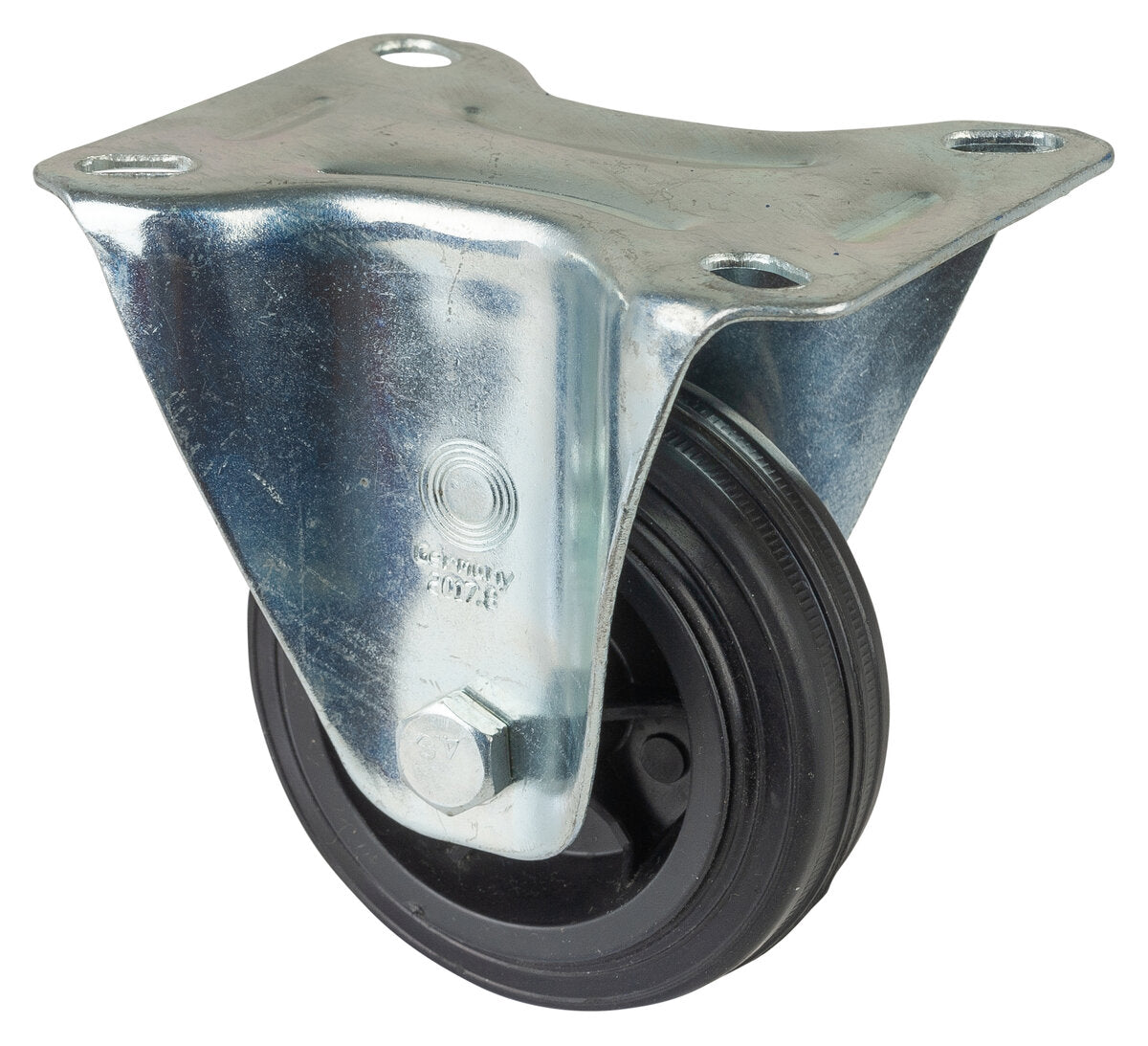 Transporthjul L410.B40.080, Produkttype: Faste hjul, Festing: Platefeste, Ø skruehull: 9 mm, Hjulets senter: Plast, Slitebane: Svart gummi, Lager: Glidelager, Ø hjul: 80 mm, Lastkapasitet: 50 kg