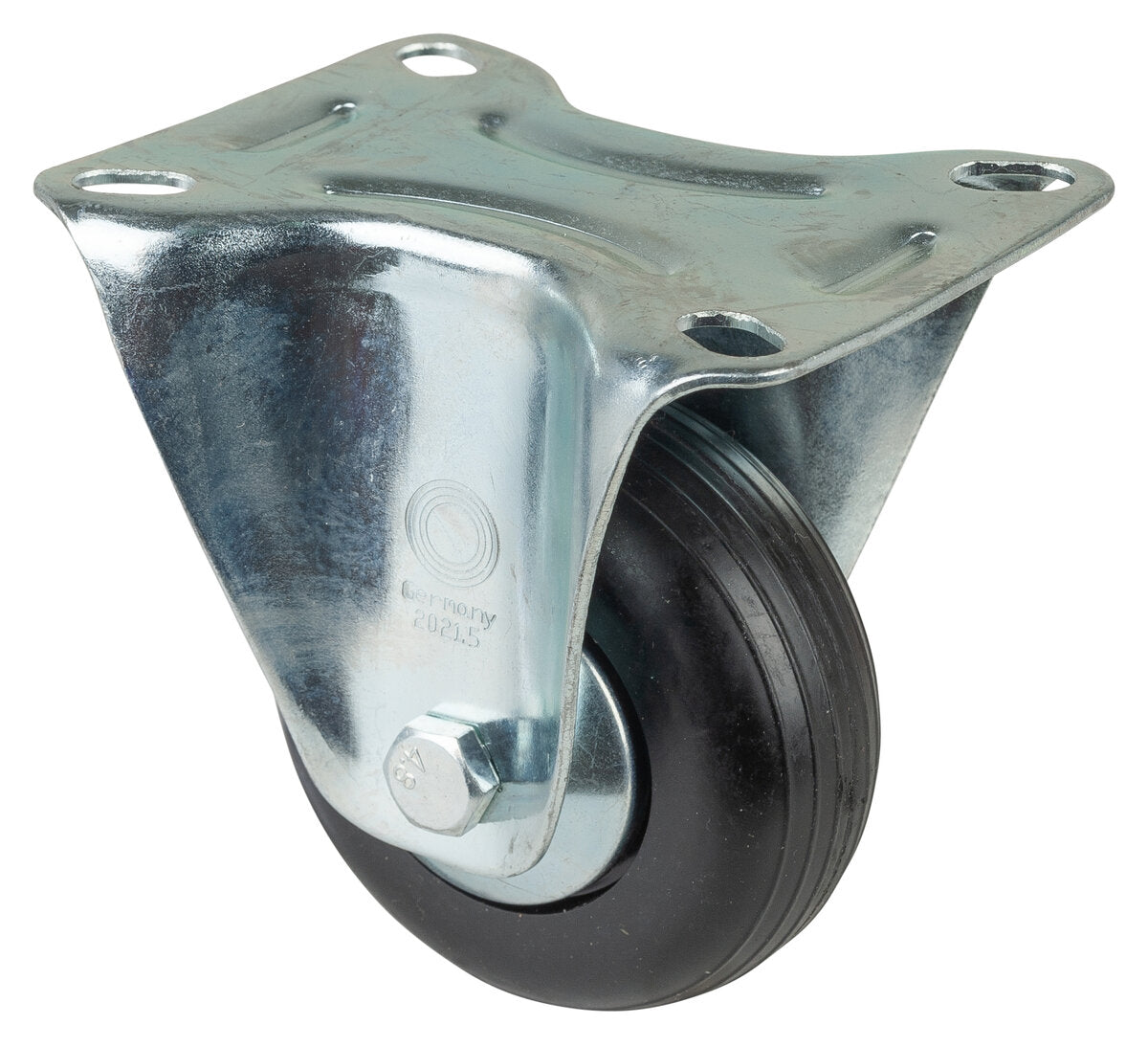 Transporthjul L410.B40.081, Produkttype: Faste hjul, Festing: Platefeste, Ø skruehull: 9 mm, Hjulets senter: Plast, Slitebane: Svart gummi, Lager: Glidelager, Ø hjul: 80 mm, Lastkapasitet: 100 kg