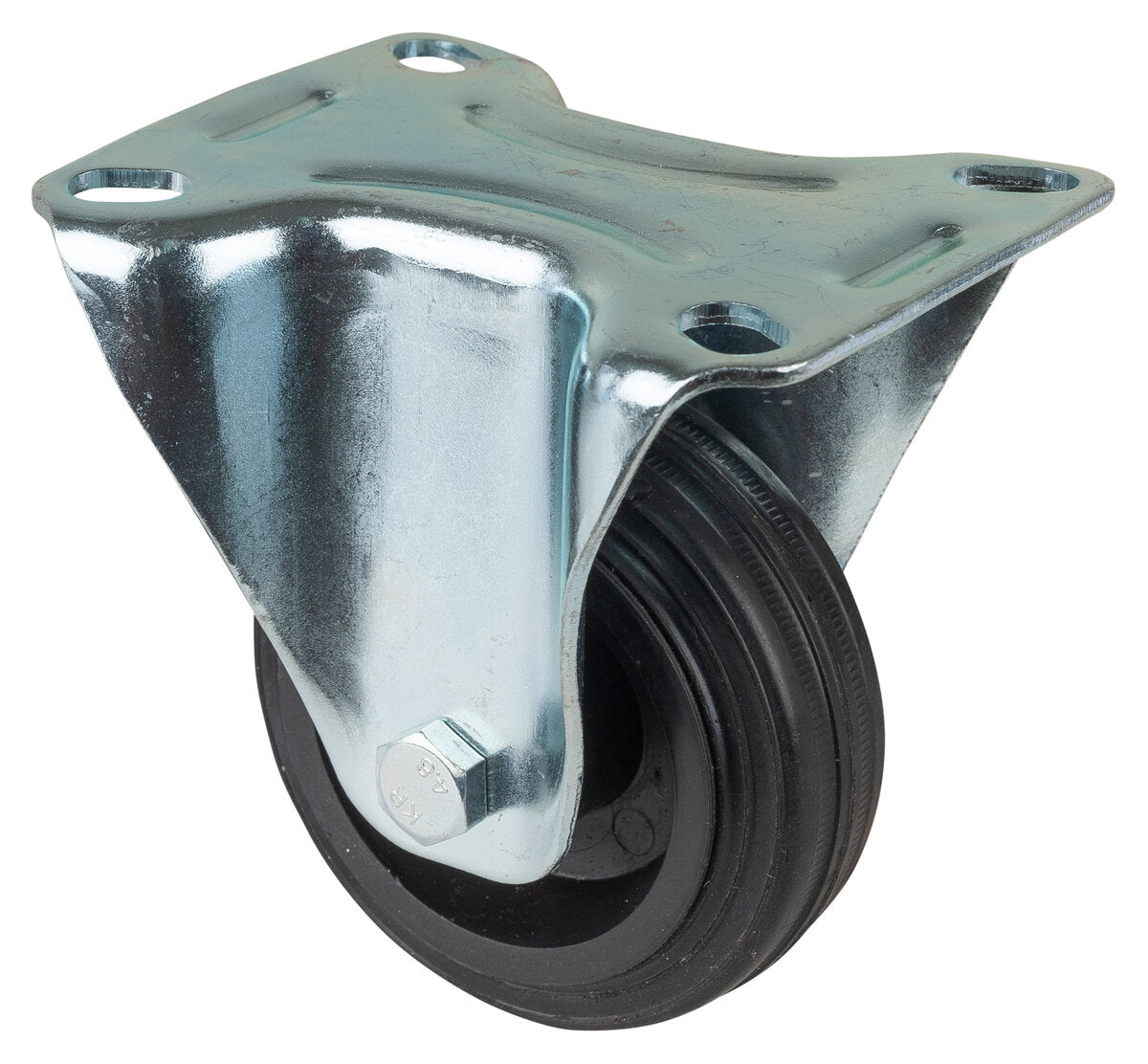 Transporthjul L410.B45.080, Produkttype: Faste hjul, Festing: Platefeste, Ø skruehull: 9 mm, Hjulets senter: Plast, Slitebane: Svart gummi, Lager: Rullelager, Ø hjul: 80 mm, Lastkapasitet: 50 kg